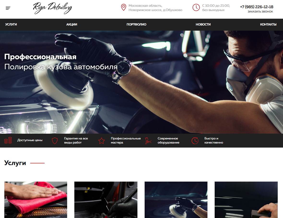 Создать современный сайт, который продемонстрирует услуги и его особенности детейлинга, а также покажет компанию. Кроме того, стояла задача с помощью удобного сайта и его комплексного продвижения привлечь новых клиентов и увеличить продажи.